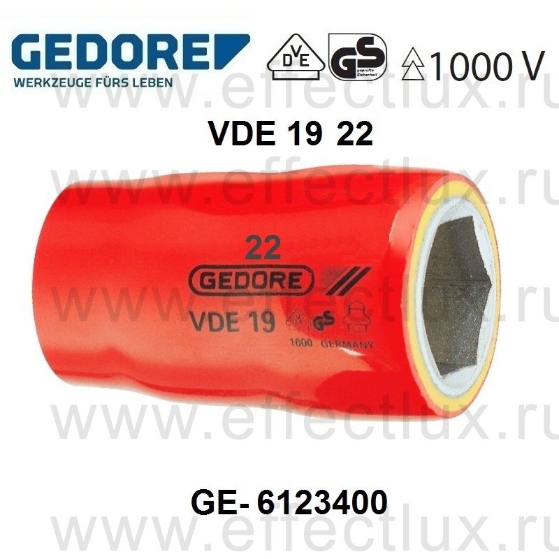 GEDORE * VDE 19 22 ГОЛОВКА ТОРЦЕВАЯ 1/2'' 22 мм. GE-6123400
