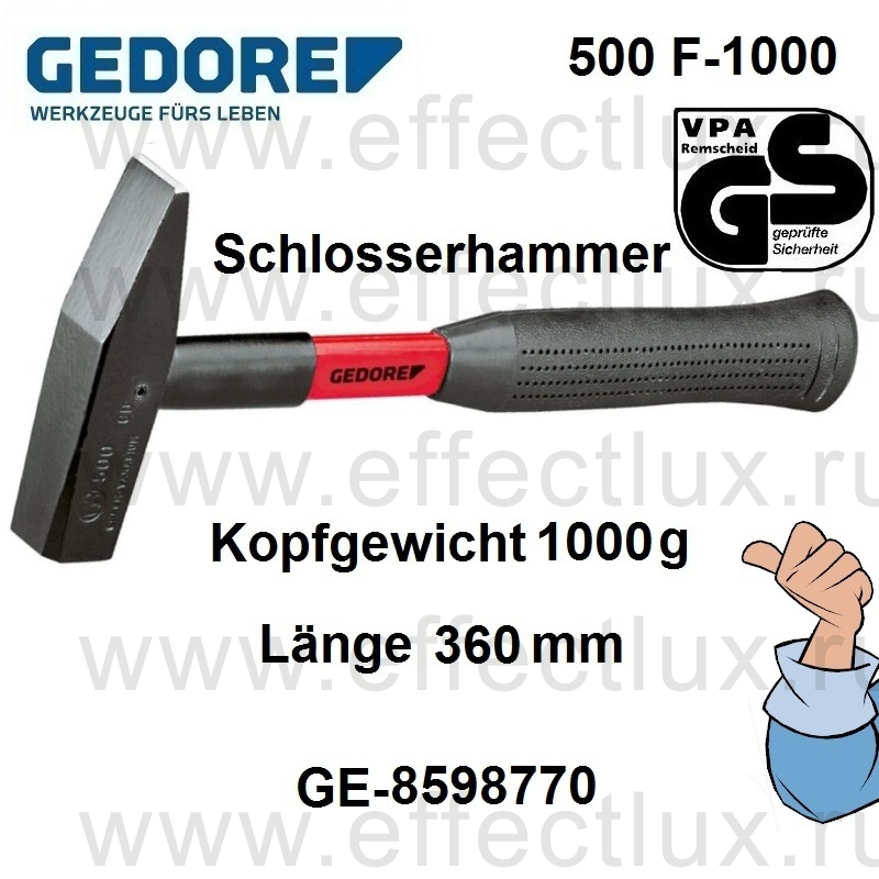 GEDORE 500 F-1000 МОЛОТОК СЛЕСАРНЫЙ 1000 гр. *** 500 F-1000 Schlosserhammer mit Fiberglasstiel, 1000 g