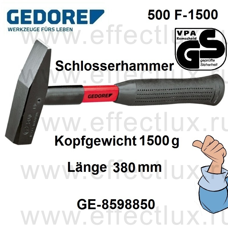 GEDORE 500 F-1500 МОЛОТОК СЛЕСАРНЫЙ 1500 гр. *** 500 F-1500 Schlosserhammer mit Fiberglasstiel, 1500 g