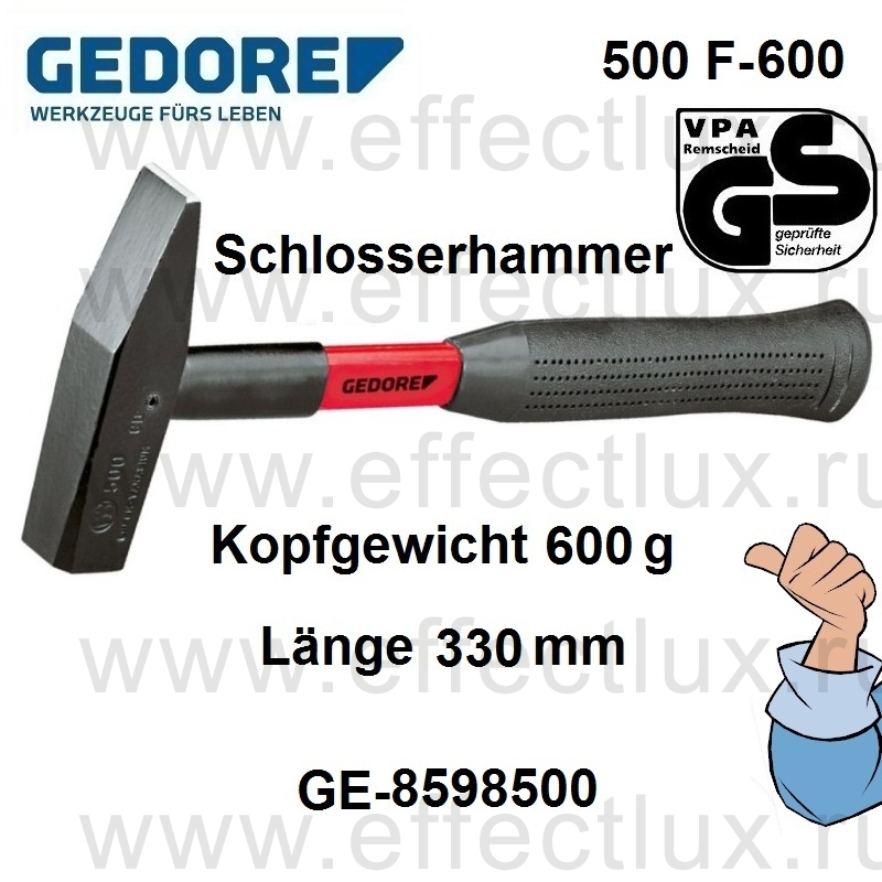 GEDORE 500 F-600 МОЛОТОК СЛЕСАРНЫЙ 600 гр. *** 500 F-600 Schlosserhammer mit Fiberglasstiel, 600 g