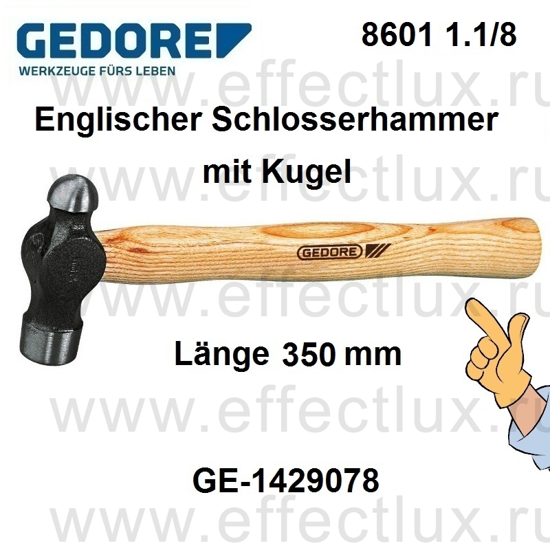 GEDORE 8601 1.1/8 МОЛОТОК СЛЕСАРНЫЙ АНГЛИЙСКОЙ ФОРМЫ 1.1/8 lbs. GE-1429078