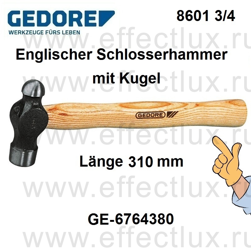 GEDORE 8601 3/4 МОЛОТОК СЛЕСАРНЫЙ АНГЛИЙСКОЙ ФОРМЫ 3/4 lbs. *** Englischer Schlosserhammer mit Kugel 3/4 lbs
