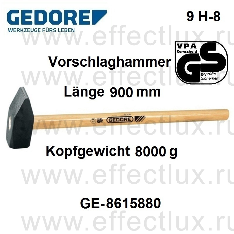 Каталог > GEDORE Профессиональный слесарно-монтажный инструмент > GEDORE Молотки и ударный инструмент > GEDORE МОЛОТЫ > GEDORE 9 H-8 МОЛОТ, 8000 гр. GE-8615880