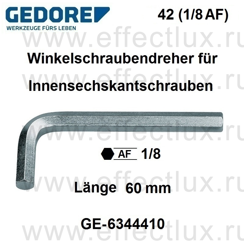 GEDORE 42 1/8AF КЛЮЧ ШЕСТИГРАННЫЙ ДЛЯ ВИНТОВ С ВНУТРЕННИМ ШЕСТИГРАННИКОМ, 1/8" GE-6344410