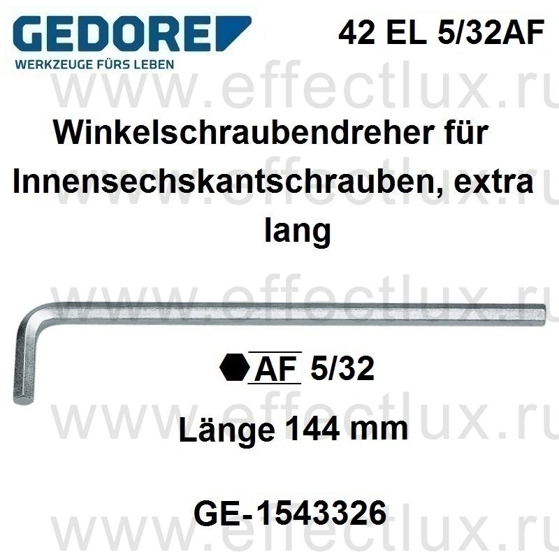 GEDORE 42 EL 5/32AF КЛЮЧ ШЕСТИГРАННЫЙ ДЛЯ ВИНТОВ С ВНУТРЕННИМ ШЕСТИГРАННИКОМ, УДЛИНЁННЫЙ *** 42 EL 5/32AF Winkelschraubendreher lang, Innen-6-kant 42 EL 5/32AF