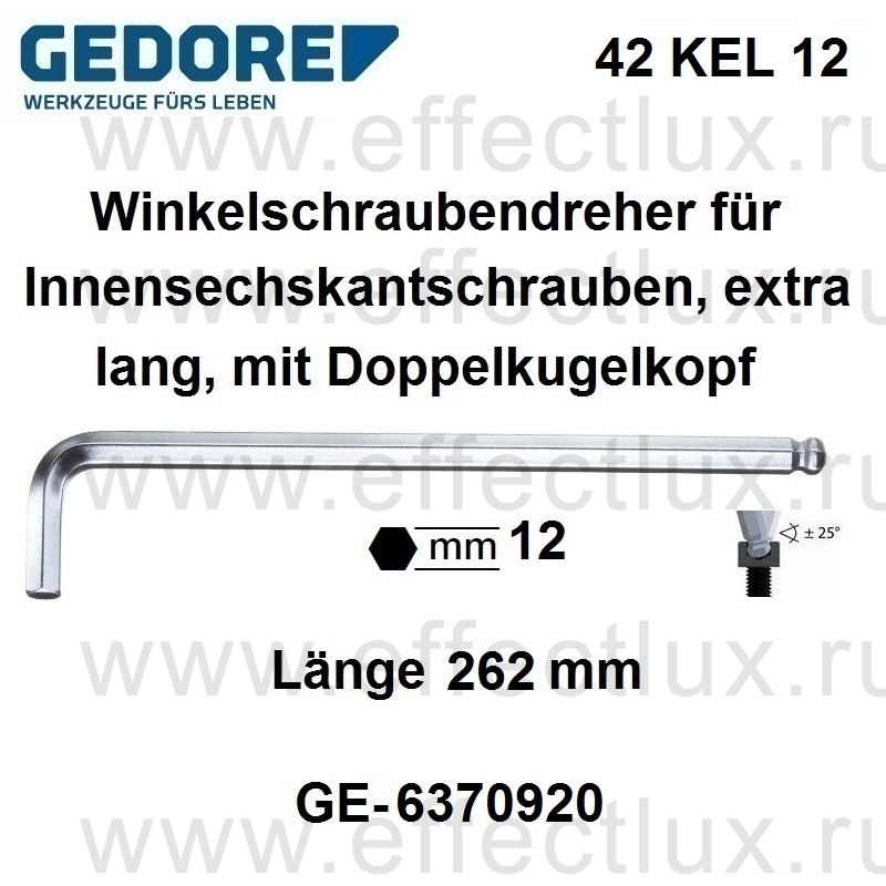 GEDORE 42 KEL 12 КЛЮЧ ШЕСТИГРАННЫЙ ДЛЯ ВИНТОВ С ВНУТРЕННИМ ШЕСТИГРАННИКОМ, УДЛИНЁННЫЙ GE-6370920