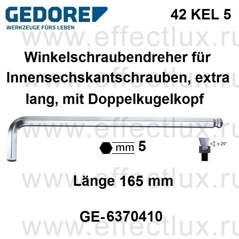 GEDORE 42 KEL 5 КЛЮЧ ШЕСТИГРАННЫЙ ДЛЯ ВИНТОВ С ВНУТРЕННИМ ШЕСТИГРАННИКОМ, УДЛИНЁННЫЙ GE-6370410