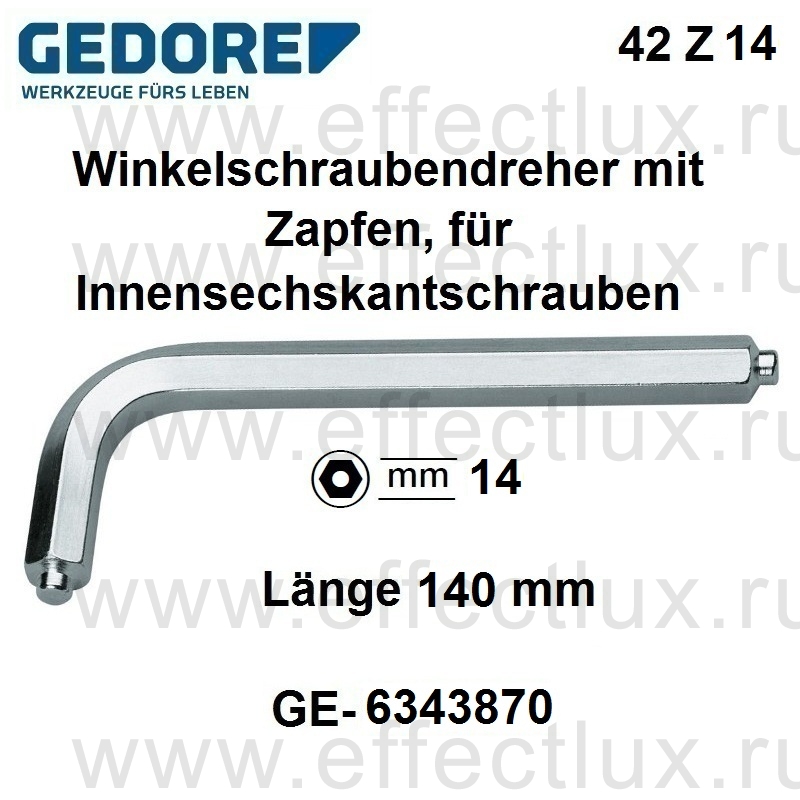GEDORE 42 Z 14 КЛЮЧ ШЕСТИГРАННЫЙ С ВЫСТУПОМ ДЛЯ ВИНТОВ С ВНУТРЕННИМ ШЕСТИГРАННИКОМ, 14 мм *** 42 Z 14 Winkelschraubendreher mit Zapfen, Innen-6-kt 14 mm