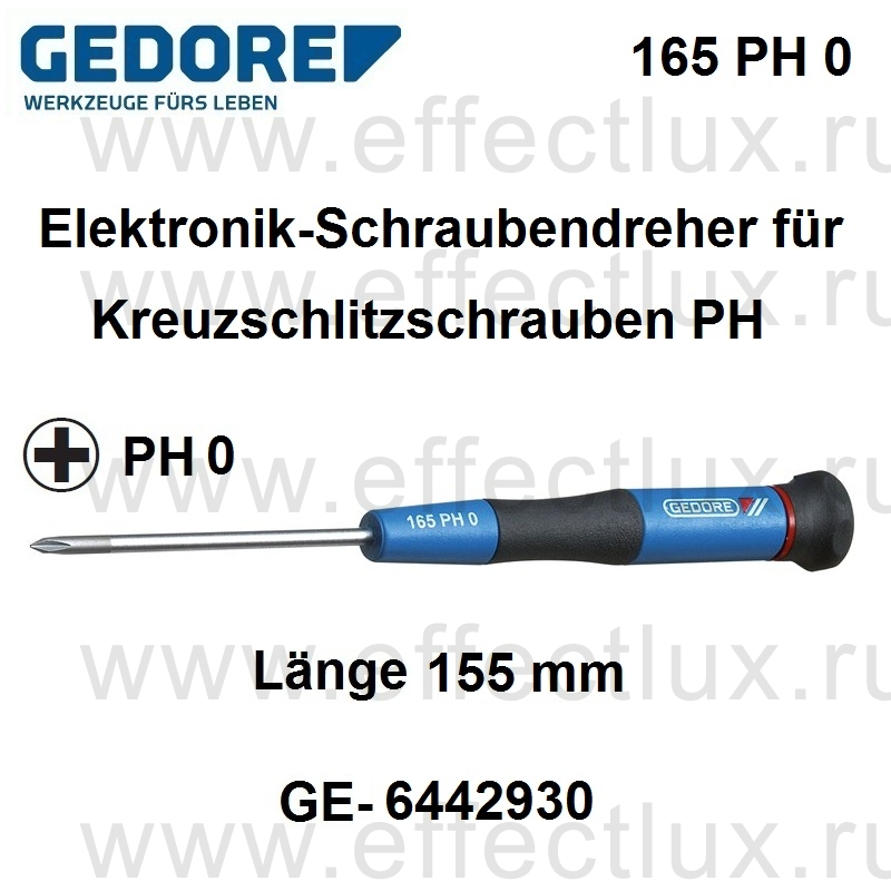 GEDORE 165 PH 0 ОТВЕРТКА ДЛЯ ЭЛЕКТРОТЕХНИЧЕСКИХ РАБОТ для винтов PH с крестообразным шлицем *** 165 PH 0 Elektronik-Schraubendreher, Kreuzschlitz PH 0
