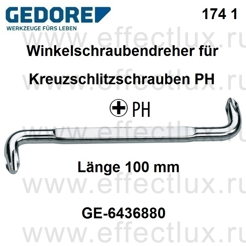 GEDORE 174 1 ОТВЕРТКА ДВУСТОРОННЯЯ ИЗОГНУТАЯ для винтов с крестообразным шлицем, PH1-2 *** 174 1 Winkelschraubendreher Kreuzschlitz PH 1+2