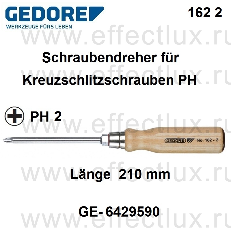 GEDORE 162 2 ОТВЕРТКИ С ДЕРЕВЯННОЙ РУКОЯТКОЙ для винтов PH с крестообразным шлицем *** 162 2 Schraubendreher mit Holzgriff, Kreuzschlitz PH 1