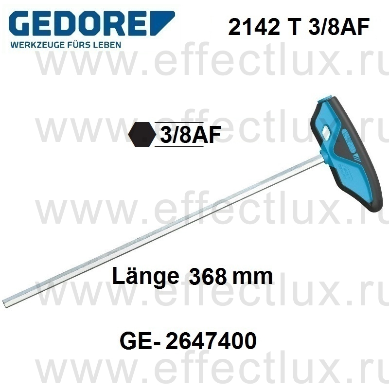 GEDORE 2142 T 3/8AF КЛЮЧ ШЕСТИГРАННЫЙ С 2C-Т-ОБРАЗНОЙ РУКОЯТКОЙ 3/8" GE-2647400