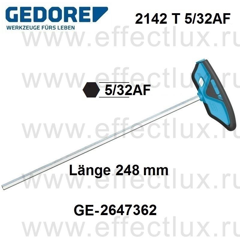 GEDORE 2142 T 5/32AF КЛЮЧ ШЕСТИГРАННЫЙ С 2C-Т-ОБРАЗНОЙ РУКОЯТКОЙ 5/32" GE-2647362