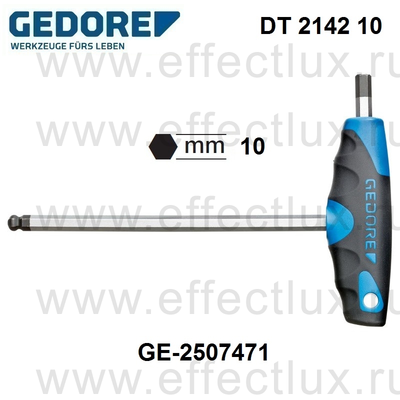GEDORE DT 2142 10 КЛЮЧ ШЕСТИГРАННЫЙ С 2C-Т-ОБРАЗНОЙ РУКОЯТКОЙ 10 мм *** DT 2142 10 Winkelschraubendreher mit 2K-T-Griff 10 mm