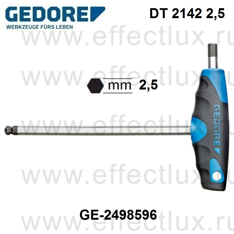 GEDORE DT 2142 2,5 КЛЮЧ ШЕСТИГРАННЫЙ С 2C-Т-ОБРАЗНОЙ РУКОЯТКОЙ 2,5 мм GE-2498596