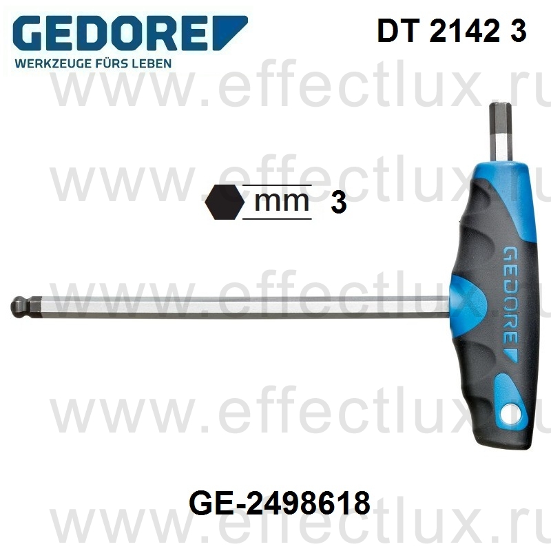 GEDORE DT 2142 3 КЛЮЧ ШЕСТИГРАННЫЙ С 2C-Т-ОБРАЗНОЙ РУКОЯТКОЙ 3 мм GE-2498618