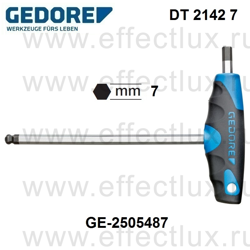 GEDORE DT 2142 7 КЛЮЧ ШЕСТИГРАННЫЙ С 2C-Т-ОБРАЗНОЙ РУКОЯТКОЙ 7 мм GE-2505487