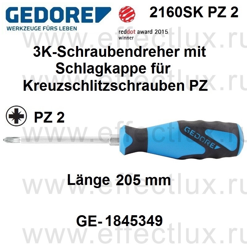 GEDORE 2160SK PZ 2 ОТВЕРТКА УДАРНАЯ С ТРЕХКОМПОНЕНТНОЙ РУКОЯТКОЙ для винтов PZ с крестообразным шлицем *** 2160SK PZ 2 3K-Schraubendreher mit Schlagkappe Kreuzschlitz PZ 2