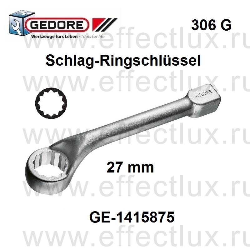 GEDORE * 306 G 27 Ключ накидной ударный изогнутый метрический 27мм GE-1415875
