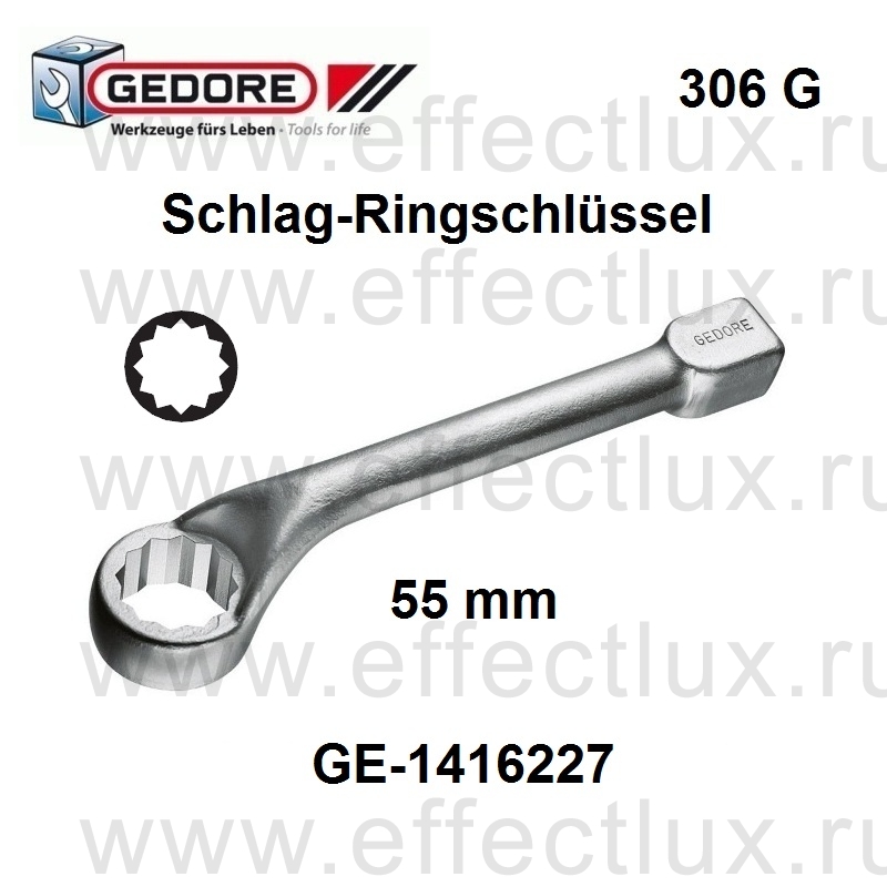 GEDORE * 306 G 55 Ключ накидной ударный изогнутый метрический 55мм *** Schlag-Ringschlüssel gekröpft 55 mm * No. 306 G 55