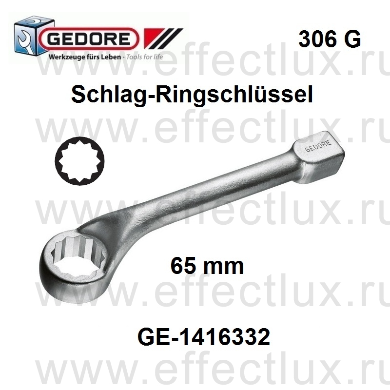 GEDORE * 306 G 65 Ключ накидной ударный изогнутый метрический 65мм *** Schlag-Ringschlüssel gekröpft 65 mm * No. 306 G 65
