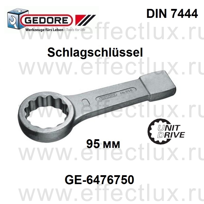 Каталог > GEDORE Профессиональный слесарно-монтажный инструмент > GEDORE Ключи гаечные > GEDORE Ключи ударные > GEDORE * 306 Ключи накидные ударные метрические > GEDORE * 306-95 Ключ накидной ударный метрический 95 мм. GE-6476750