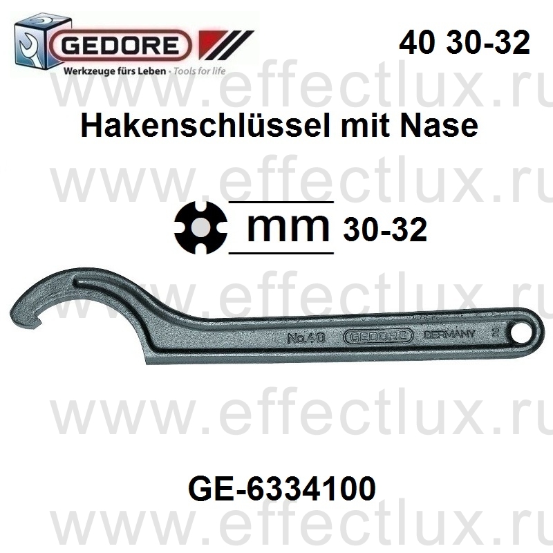 GEDORE 40 30-32 КЛЮЧ РАДИУСНЫЙ ДЛЯ КРУГЛЫХ ГАЕК с носиком GE-6334100