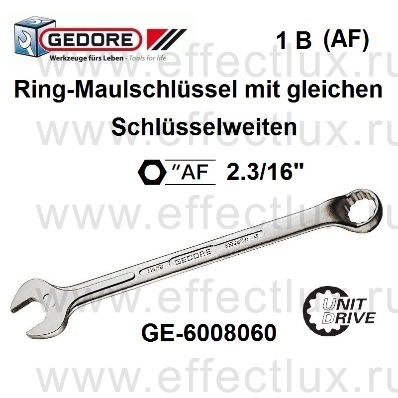 GEDORE 1 B 2.3/16AF КЛЮЧ ГАЕЧНЫЙ КОМБИНИРОВАННЫЙ дюймовый 2.3/16" GE-6008060