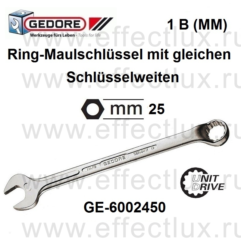 GEDORE 1 B 25 КЛЮЧ ГАЕЧНЫЙ КОМБИНИРОВАННЫЙ метрический 25 мм *** Ring-Maulschlüssel UD-Profil 25 mm