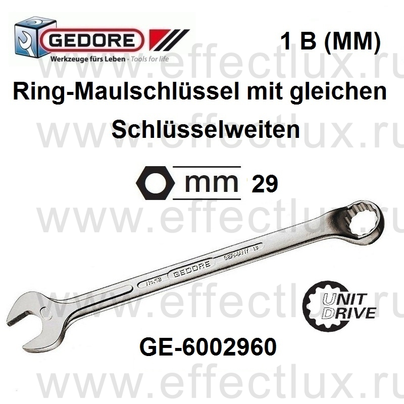 GEDORE 1 B 29 КЛЮЧ ГАЕЧНЫЙ КОМБИНИРОВАННЫЙ метрический 29 мм *** Ring-Maulschlüssel UD-Profil 29 mm