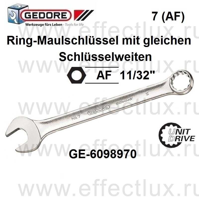 GEDORE 7 11/32AF КЛЮЧ ГАЕЧНЫЙ КОМБИНИРОВАННЫЙ дюймовый 11/32" GE-6098970