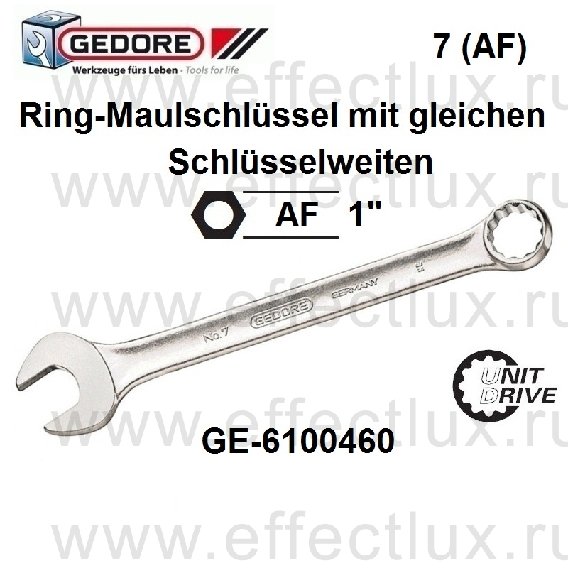 GEDORE 7 1AF КЛЮЧ ГАЕЧНЫЙ КОМБИНИРОВАННЫЙ дюймовый 1" GE-6100460