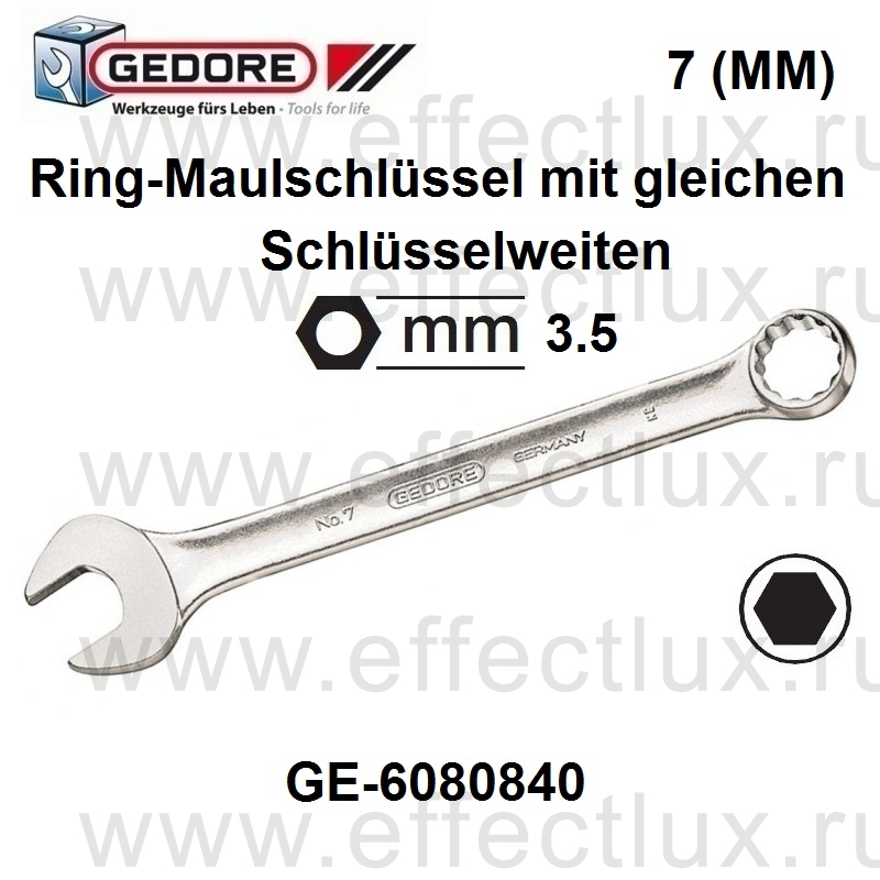 GEDORE 7 3,5 (MM) КЛЮЧ ГАЕЧНЫЙ КОМБИНИРОВАННЫЙ метрический 3.5 мм. GE-6080840
