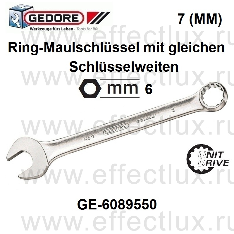 GEDORE 7 6 (MM) КЛЮЧ ГАЕЧНЫЙ КОМБИНИРОВАННЫЙ метрический М6 *** 7 (MM) Ring-Maulschlüssel mit gleichen Schlüsselweiten UD-kant 6 mm