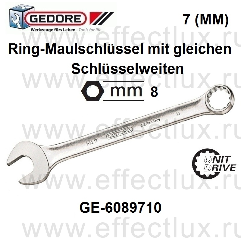 GEDORE 7 8 (MM) КЛЮЧ ГАЕЧНЫЙ КОМБИНИРОВАННЫЙ метрический 8 мм. GE-6089710