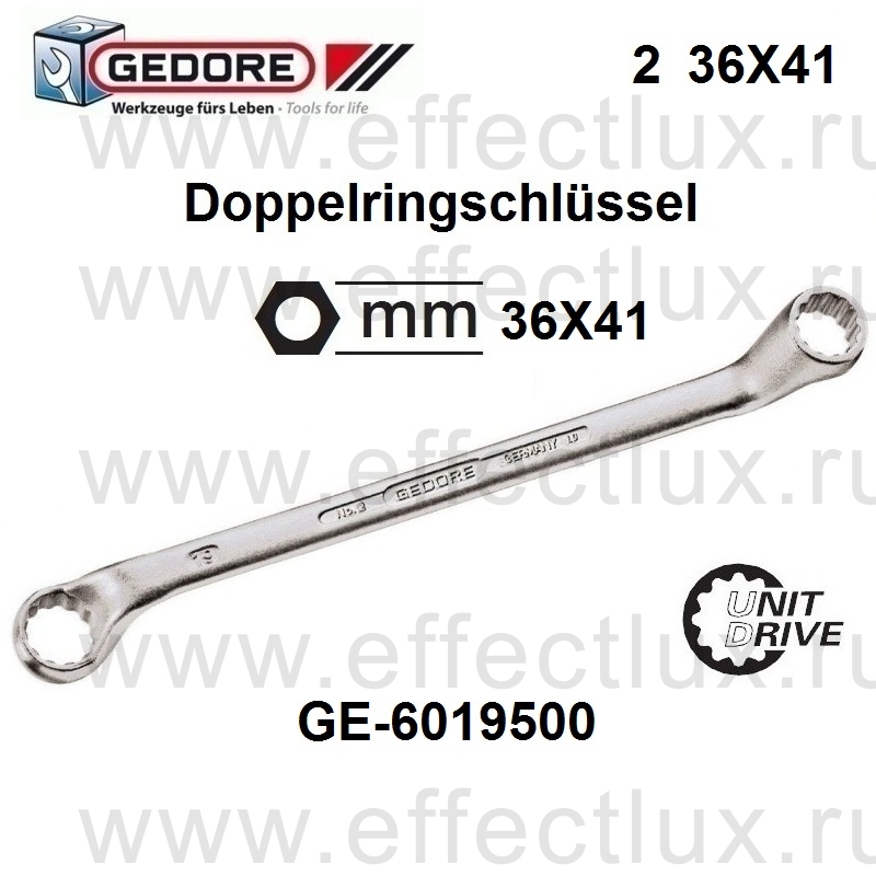 GEDORE 2 36Х41 КЛЮЧ ГАЕЧНЫЙ НАКИДНОЙ ДВУСТОРОННИЙ метрический размер: 36х41 GE-6019500