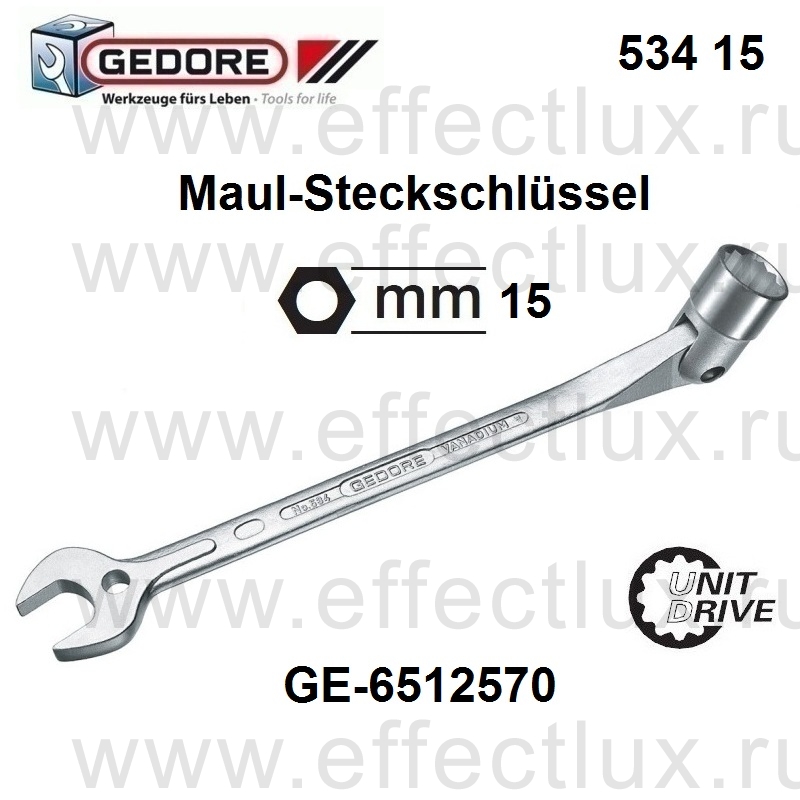 GEDORE 534 15 КЛЮЧ ШАРНИРНЫЙ КОМБИНИРОВАННЫЙ Размер 15 мм *** 534 Maul-Steckschlüssel UD-Profil 15 mm