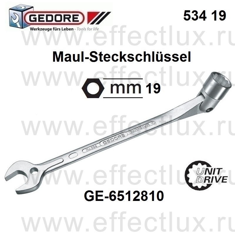 GEDORE 534 19 КЛЮЧ ШАРНИРНЫЙ КОМБИНИРОВАННЫЙ Размер 19 мм *** 534 Maul-Steckschlüssel UD-Profil 19 mm