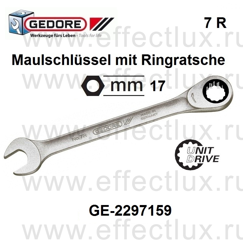 GEDORE 7 R 17 КЛЮЧ ГАЕЧНЫй РОЖКОВЫй С ТРЕЩОТКОЙ *** 7 R 17 Maulschlüssel mit Ringratsche