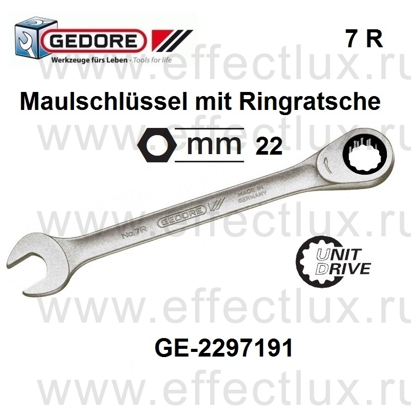 GEDORE 7 R 22 КЛЮЧ ГАЕЧНЫй РОЖКОВЫй С ТРЕЩОТКОЙ *** 7 R 22 Maulschlüssel mit Ringratsche