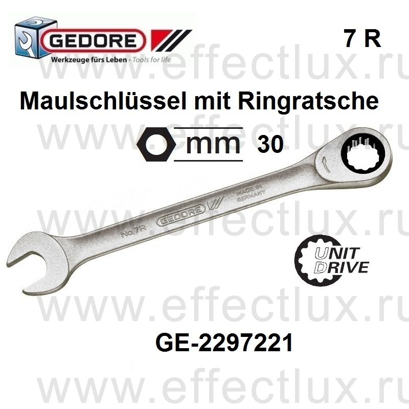 GEDORE 7 R 30 КЛЮЧ ГАЕЧНЫй РОЖКОВЫй С ТРЕЩОТКОЙ *** 7 R 30 Maulschlüssel mit Ringratsche