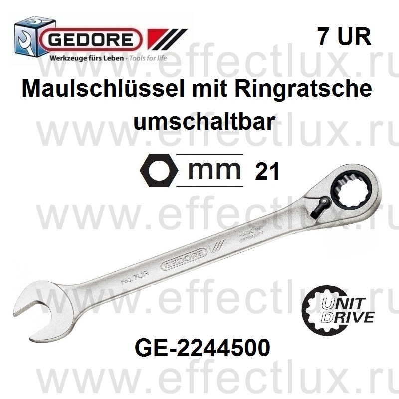 GEDORE 7 UR 21 КЛЮЧ ГАЕЧНЫЙ РОЖКОВЫЙ С ТРЕЩОТКОЙ ПЕРЕКЛЮЧАЕМЫЙ 21мм GE-2244500