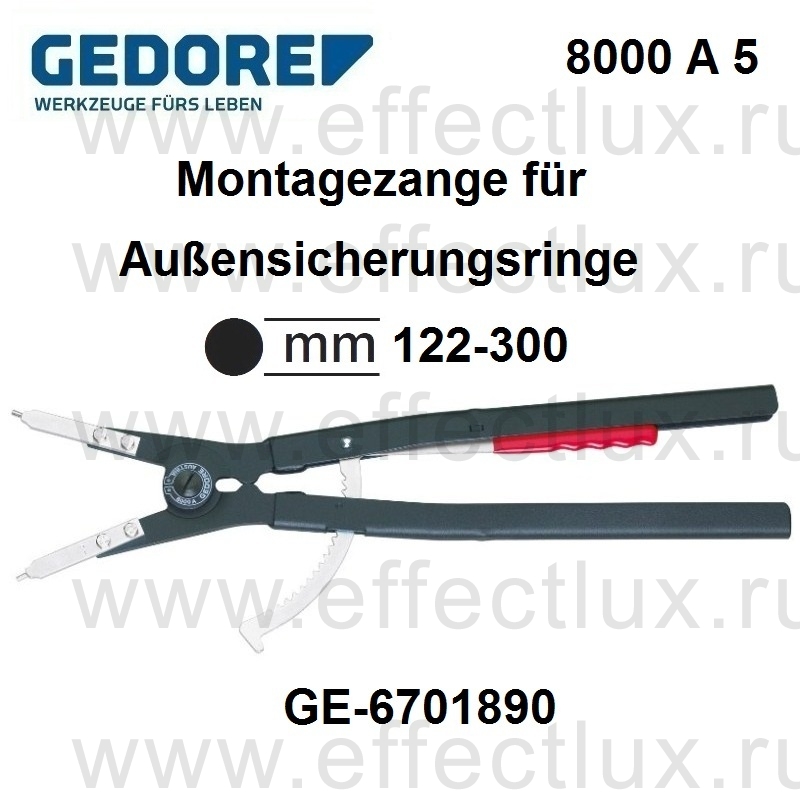 GEDORE 8000 A 5 СЪЕМНИК ВНЕШНИХ СТОПОРНЫХ КОЛЕЦ *** Montagezange für Außensicherungsringe, gerade, 122-300 mm
