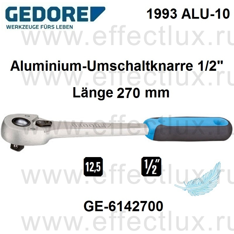 GEDORE 1993 ALU-10 ТРЕЩОТКА АЛЮМИНИЕВАЯ С МЕХАНИЗМОМ ПЕРЕКЛЮЧЕНИЯ 1/2" GE-6142700