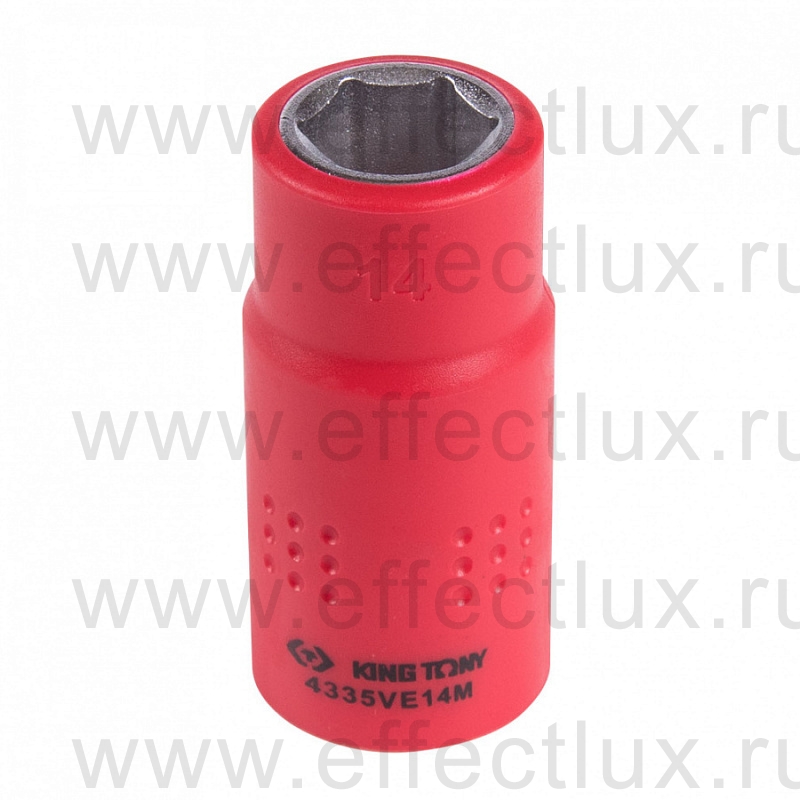 Каталог > KING TONY® Профессиональный слесарно-монтажный инструмент > Электро-изолированный инструмент VDE > Головки торцевые шестигранные и аксессуары VDE > Головки торцевые шестигранные VDE 1/2" > 4335VE14M Головка торцевая диэлектрическая шестигранная 1/2", 14 мм.