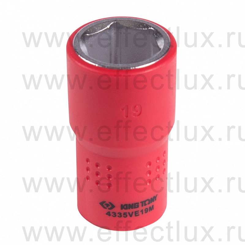 Каталог > KING TONY® Профессиональный слесарно-монтажный инструмент > Электро-изолированный инструмент VDE > Головки торцевые шестигранные и аксессуары VDE > Головки торцевые шестигранные VDE 1/2" > 4335VE19M Головка торцевая диэлектрическая шестигранная 1/2", 19 мм.
