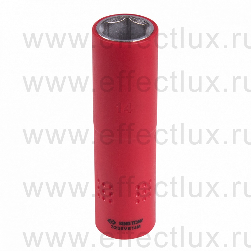 Каталог > KING TONY® Профессиональный слесарно-монтажный инструмент > Электро-изолированный инструмент VDE > Головки торцевые шестигранные и аксессуары VDE > Головки торцевые шестигранные VDE 3/8" > 3235VE14M Головка торцевая удлинённая диэлектрическая шестигранная 3/8", 14 мм.