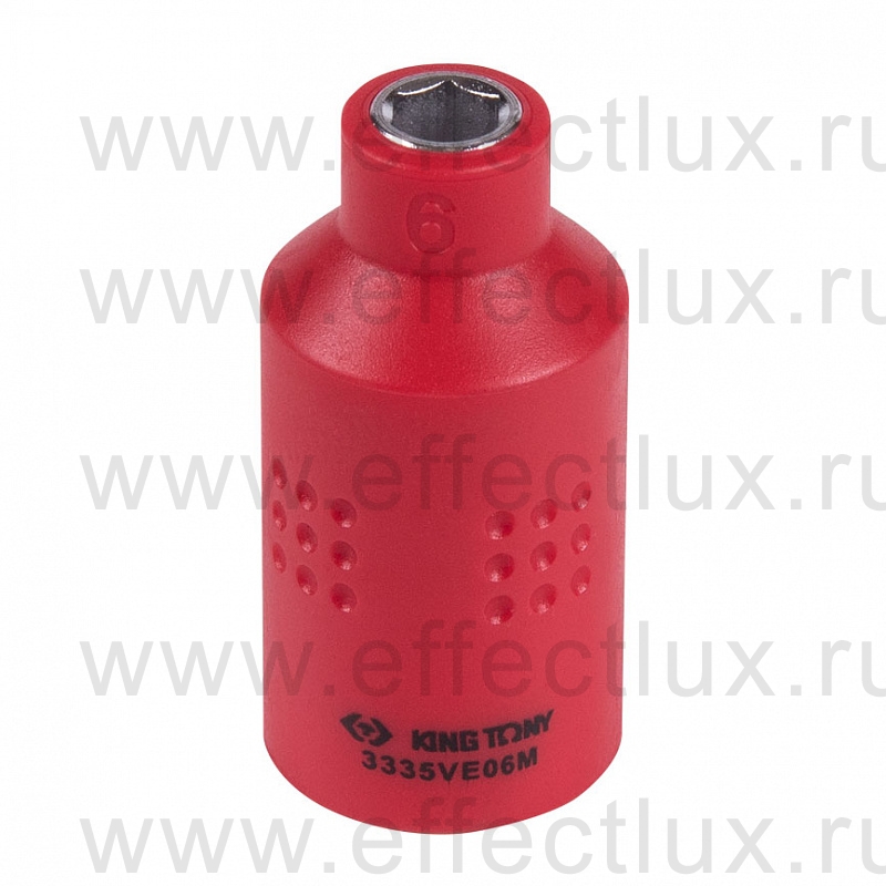 Каталог > KING TONY® Профессиональный слесарно-монтажный инструмент > Электро-изолированный инструмент VDE > Головки торцевые шестигранные и аксессуары VDE > Головки торцевые шестигранные VDE 3/8" > 3335VE06M Головка торцевая диэлектрическая шестигранная 3/8", 6 мм.