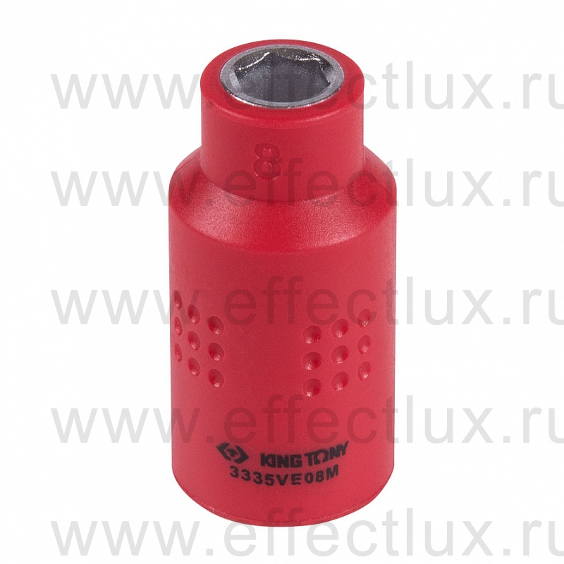 Каталог > KING TONY® Профессиональный слесарно-монтажный инструмент > Электро-изолированный инструмент VDE > Головки торцевые шестигранные и аксессуары VDE > Головки торцевые шестигранные VDE 3/8" > 3335VE08M Головка торцевая диэлектрическая шестигранная 3/8", 8 мм.