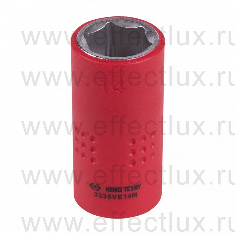 Каталог > KING TONY® Профессиональный слесарно-монтажный инструмент > Электро-изолированный инструмент VDE > Головки торцевые шестигранные и аксессуары VDE > Головки торцевые шестигранные VDE 3/8" > 3335VE14M Головка торцевая диэлектрическая шестигранная 3/8", 14 мм.